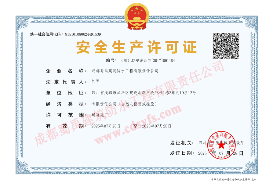 企業名稱:成都蜀禹建筑防水工程有限責任公司