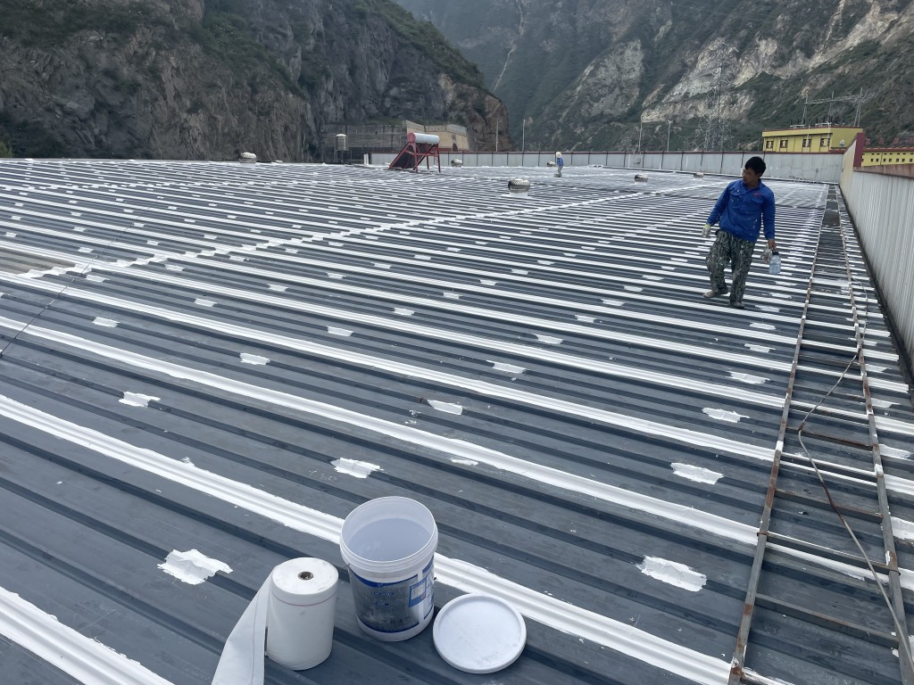 廠房屋頂漏雨采用SYR金屬屋面專用防水涂料施工處理