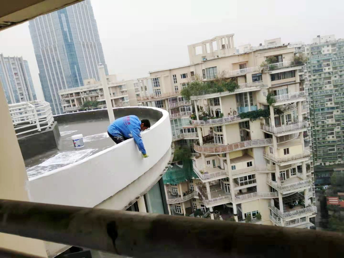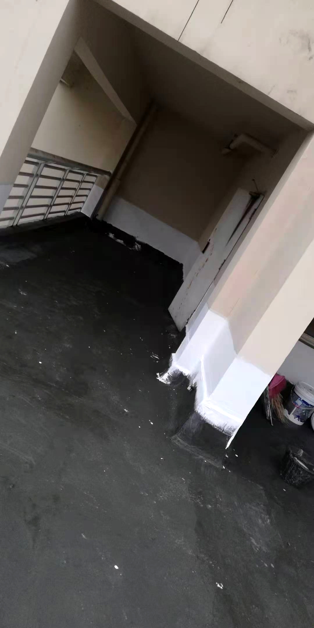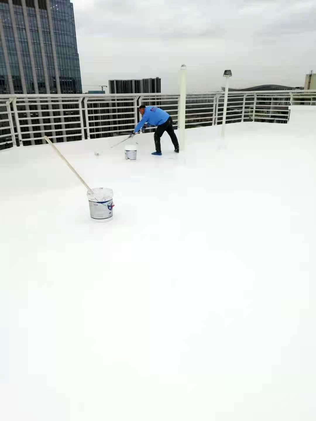 成都市天府大道天鵝湖花園2棟與10棟屋頂存在漏水的現(xiàn)象,經(jīng)過我公司技術(shù)人員到達(dá)現(xiàn)場(chǎng)查勘情況,為屋頂原防水層有破損漏水問題,并且屋頂?shù)脑Wo(hù)層也有很多翻砂起殼根據(jù)現(xiàn)場(chǎng)實(shí)際情況,我公司根據(jù)現(xiàn)場(chǎng)實(shí)際情況制定的方案為,將屋頂表面已破損的砂漿保護(hù)層進(jìn)行修補(bǔ)處理,先采用聚合物水泥防水涂料配合防水專用縫織聚酯布對(duì)基層表面裂縫進(jìn)行加強(qiáng)處理,然后整個(gè)屋面采用蜀禹公司的國(guó)標(biāo)I型聚合物水泥防水涂料配合防水專用縫織聚酯布一布三涂方式進(jìn)行防水施工,待干后表面再涂刷SYR金屬屋面專用防水涂料,最后表面再涂刷蜀禹透明高分子防水液罩面層。