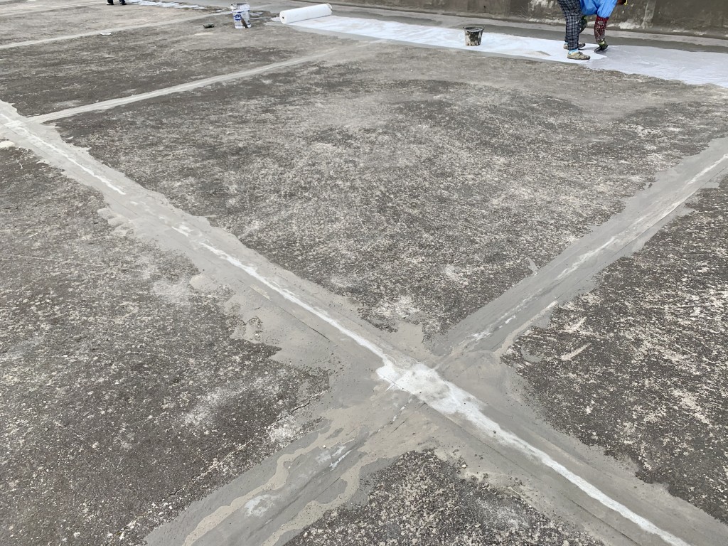 最終我們公司采取的方案是,采用我公司的聚合物防水涂料、SYR金屬屋面專用防水涂料配合專用縫織聚酯布進行施工,先針對屋頂的伸縮縫加強處理,然后再大面積施工,施工后的表層SYR金屬屋面專用防水涂料由于是專門針對裸露屋頂使用的,可以經受太陽直接暴曬,并且還具有反射隔熱作用,夏季屋頂降溫效果明顯。
