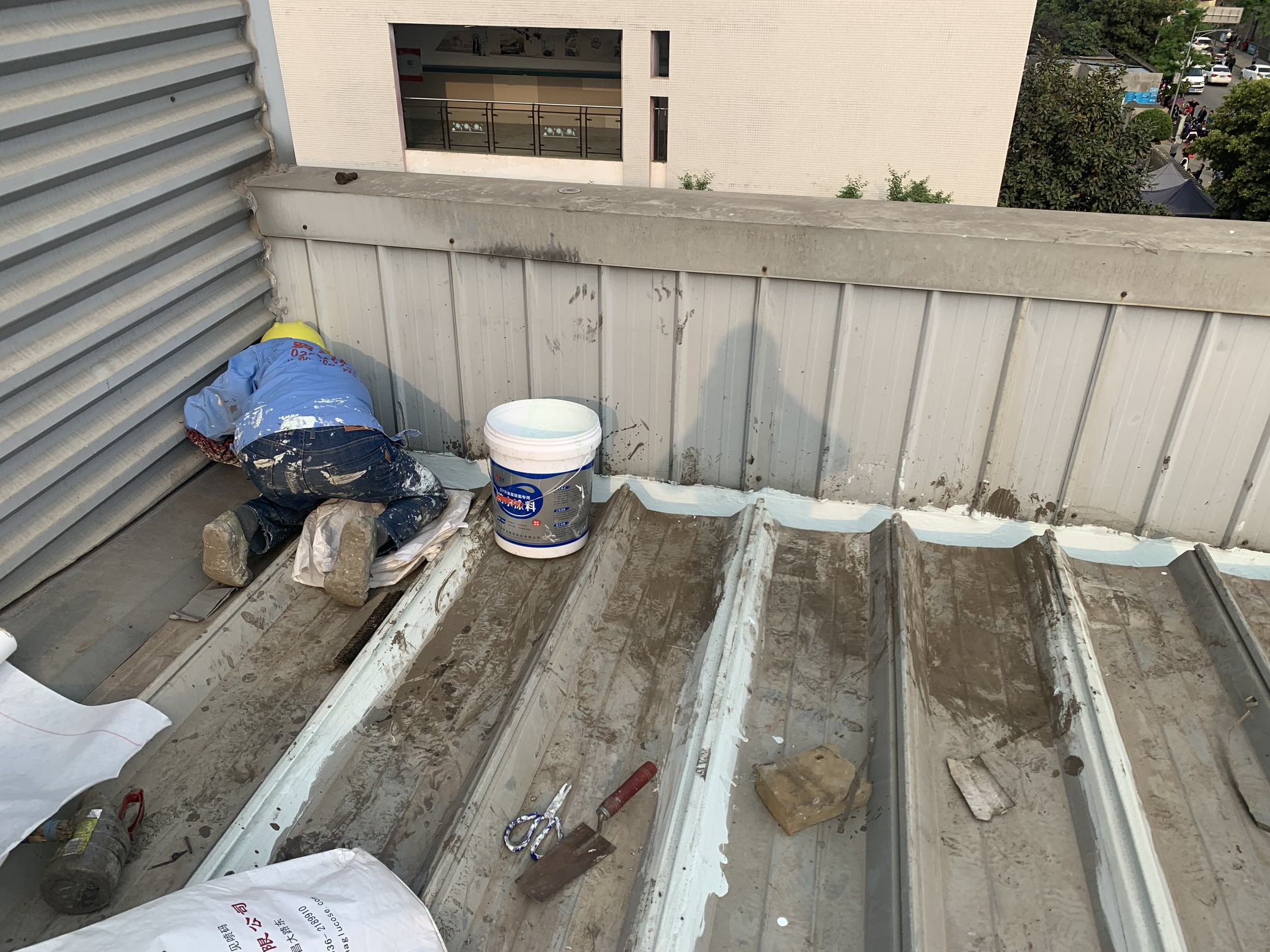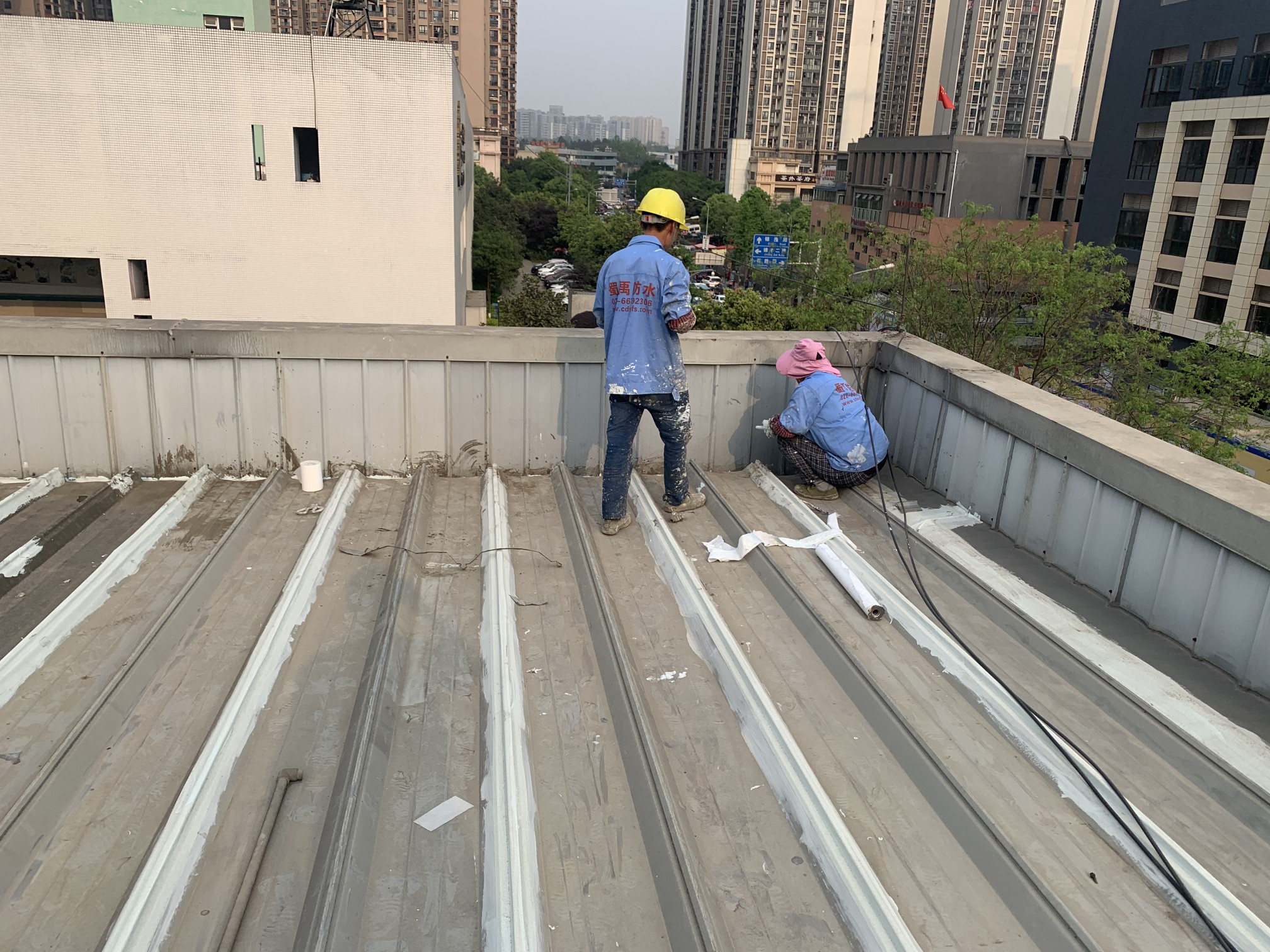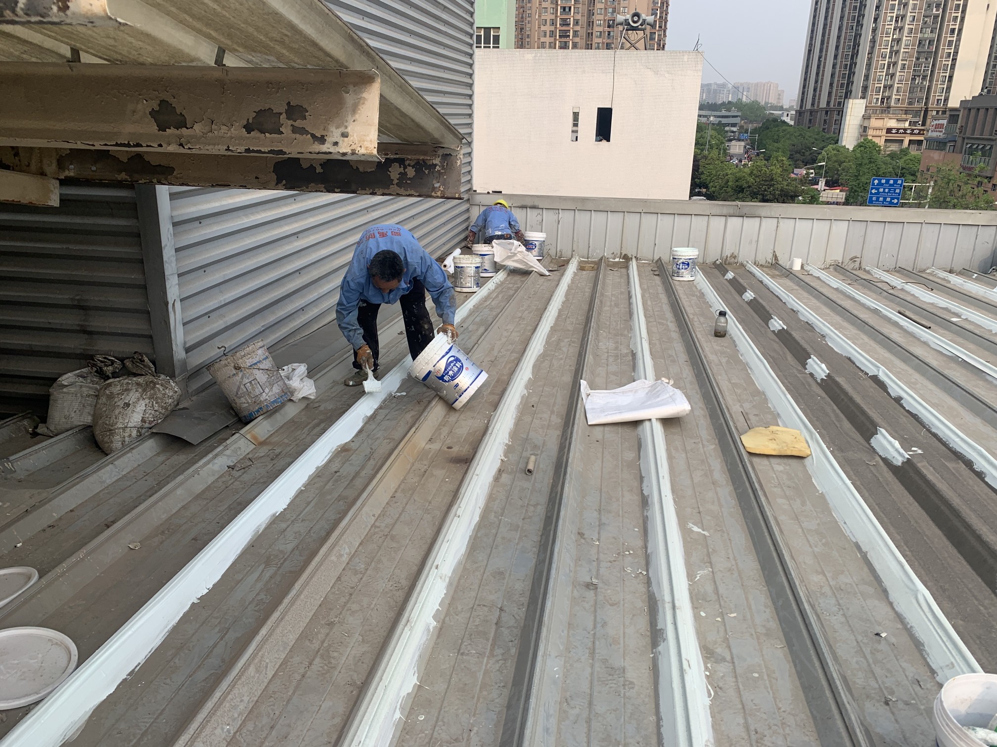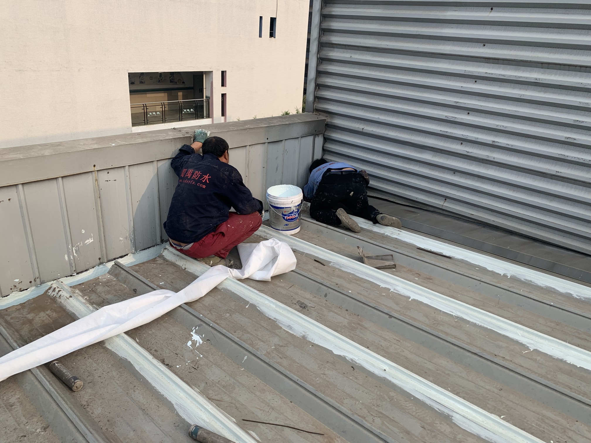 成都市錦江區皇經樓路297號的啟陽汽車錦江園區日產汽車4S店彩鋼頂屋面防水工程,彩鋼頂屋面以及排水溝采用蜀禹SYR金屬屋面專用防水涂料配合防水專用縫織聚酯布進行施工,施工后可管十年以上不漏水。施工時先將排水溝內的淤泥清理出來裝袋,然后再涂刷防水涂膜,施工后再將屋面清理的垃圾搬運下樓青云出場。