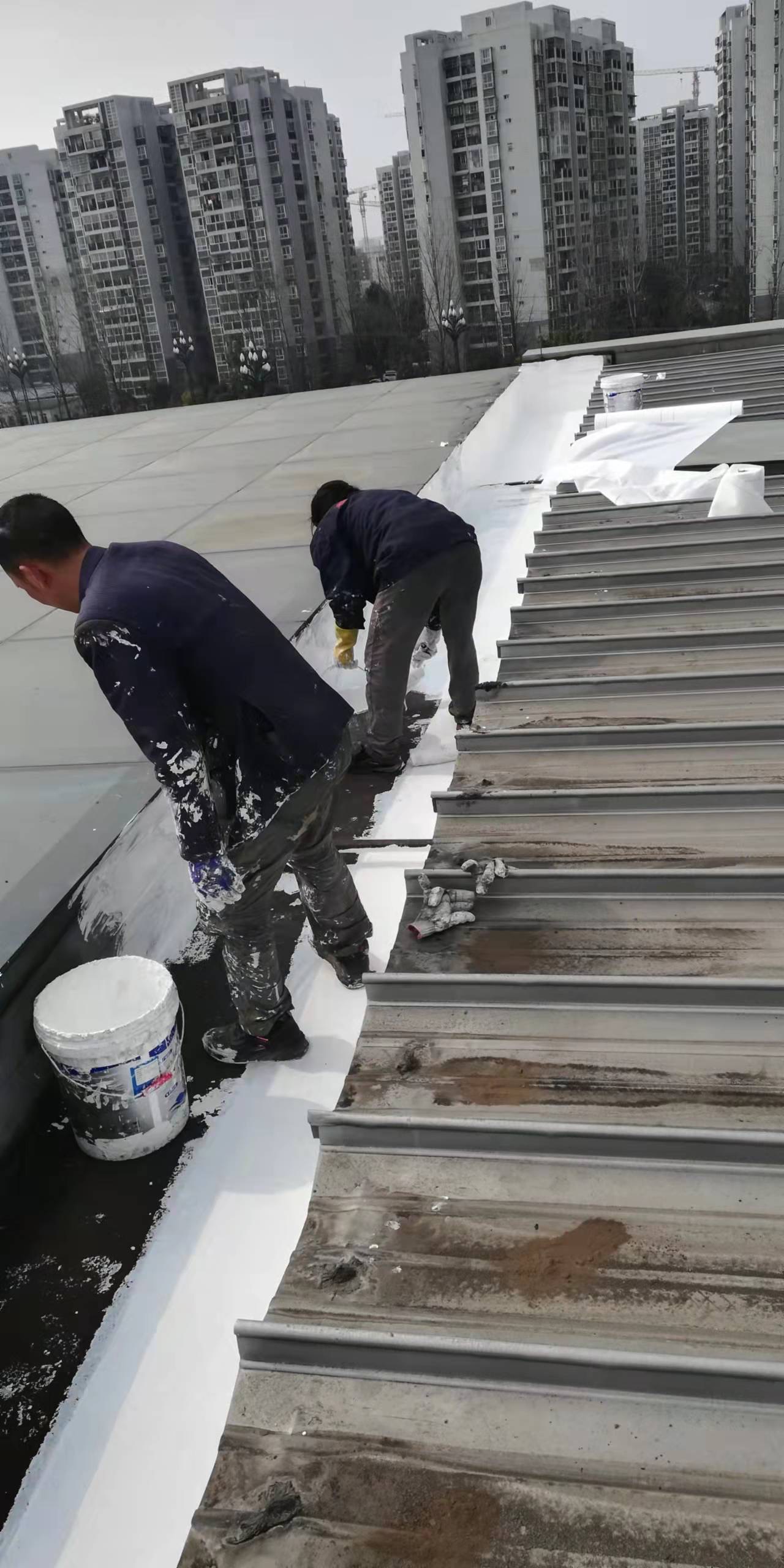我公司承接的新都客運樞紐站屋頂局部漏水維修服務施工工程,客運站屋頂天溝多處下雨漏水,我公司的處理方法是采用蜀禹SYR金屬屋面專用防水涂料配合縫織聚酯布進行防水防腐施工處理,處理之后可外露使用,耐久性好。