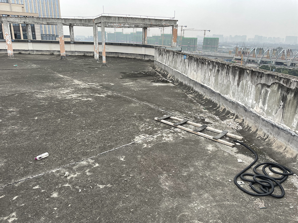 四川城際軌道交通材料有限責任公司位于成都市金牛區金鳳凰大道666號中鐵軌道交通高科技產業園第8幢2單元的辦公樓,屋頂以前開發商修建的時候防水做的不好,下雨的時候頂樓的屋頂漏水嚴重,對室內造成嚴重的影響,業主方找了幾家防水公司根據屋頂的現場情況制定了幾套方案,經過業主方的詳細斟酌,初步確定采用我公司推薦的屋頂外露型防水隔熱一體化施工工藝,然后業主方又到我公司其他正在采用此方案施工的工地現場考察,對已經施工的現場非常滿意,最總決定采納我公司的推薦方案。