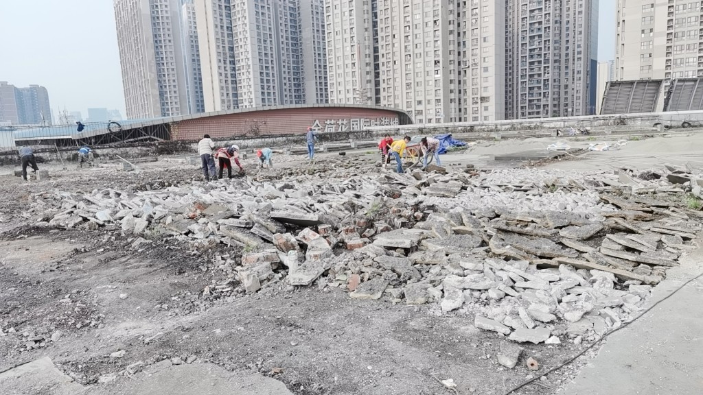 屋頂表面施工之前花臺以及瓷磚等非常雜亂(如下圖)