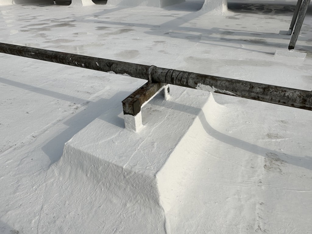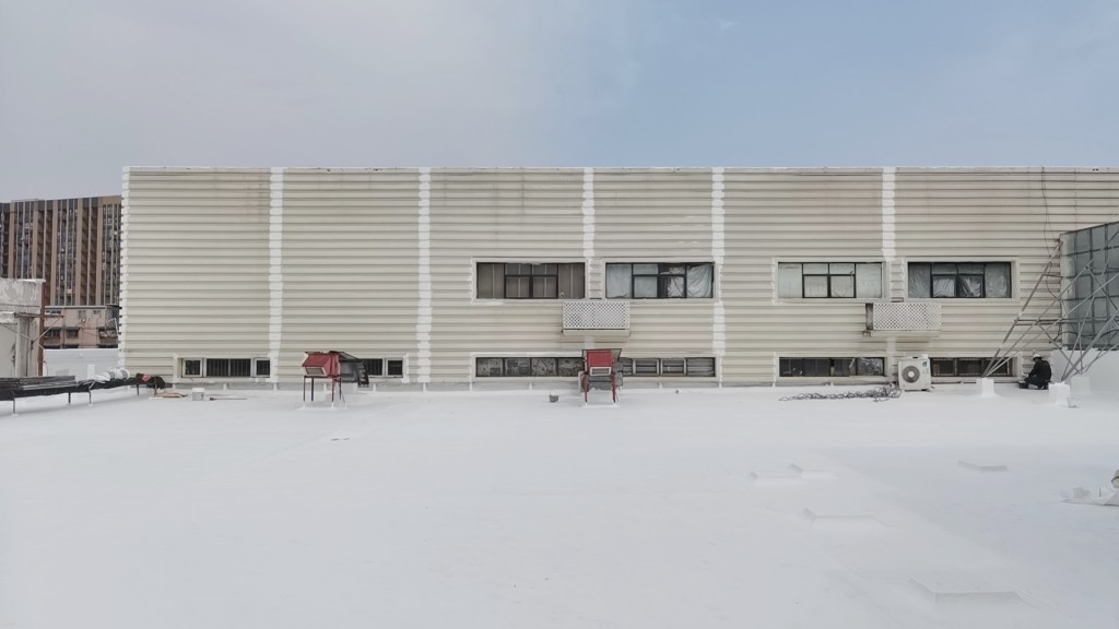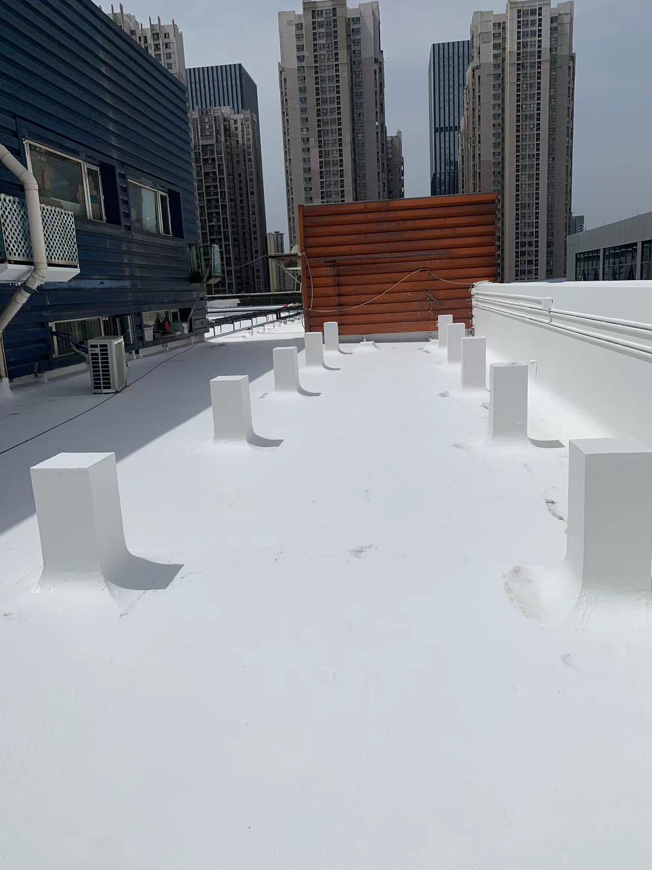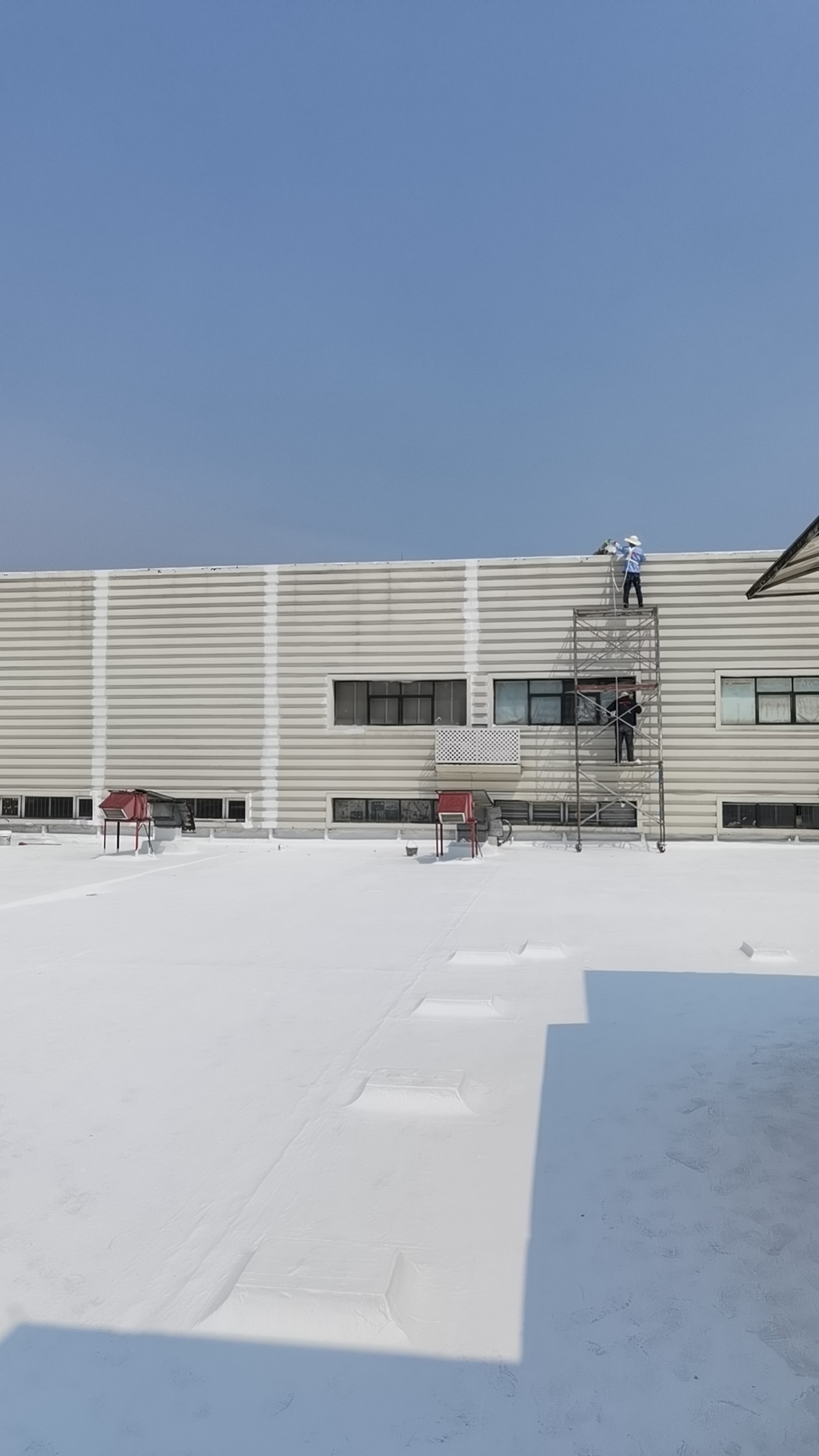 屋頂表面采用聚合物防水涂料、SYR金屬屋面防水涂料、聚酯布進行防水施工