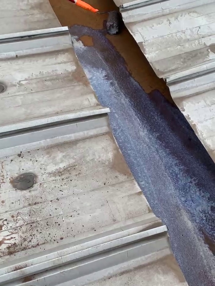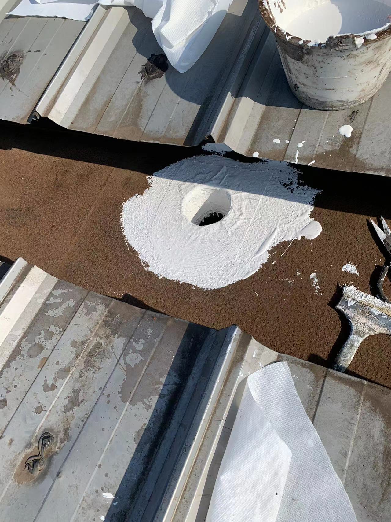 針對這一情況,成都蜀禹建筑防水工程有限責任公司迅速制定了科學合理的施工方案。他們首先對天溝內部進行了徹底的清理,然后使用彩鋼板插入已爛掉的下水管內,滲入漏斗進行固定。接著,他們采用SYR金屬屋面專用防水涂料配合縫織聚酯布進行防水防腐補漏施工處理。此外,為解決銹蝕問題,施工團隊在天溝內滿涂刷納米固銹劑進行基面固銹處理。待涂料干燥后,他們在天溝的底部及兩側面涂刷了SYR金屬屋面專用防水涂料并滿鋪貼專用縫織聚酯布,表面再涂刷SYR金屬面專用防水涂料。待所有涂料干燥后,他們又對表面進行了一次涂刷SYR金屬屋面專用防水涂料,使整個天溝得到了全面的保護。
