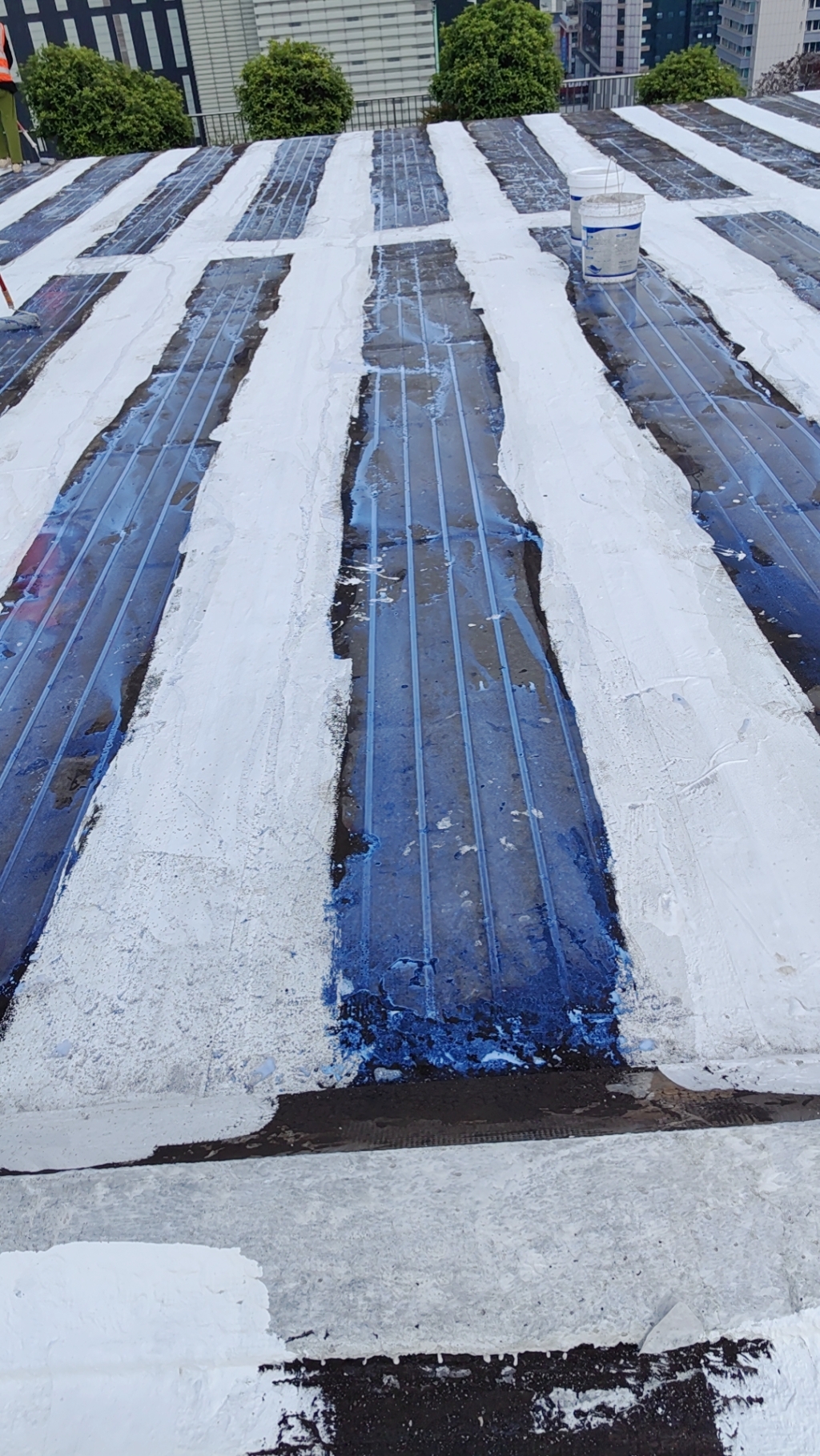 接下來(lái),公司采用了SYR金屬屋面專用防水涂料配合專用縫織聚酯布進(jìn)行防水密封處理。針對(duì)彩鋼拼接縫和固定螺釘部位這些容易漏水的關(guān)鍵區(qū)域,技術(shù)團(tuán)隊(duì)采用了一布三涂的方式,確保防水涂料能夠充分滲透并緊密貼合彩鋼表面,形成一層堅(jiān)固的防水屏障。同時(shí),縫織聚酯布的加入增強(qiáng)了防水層的韌性和耐久性,有效防止了因材料老化或外力作用導(dǎo)致的開裂和破損。