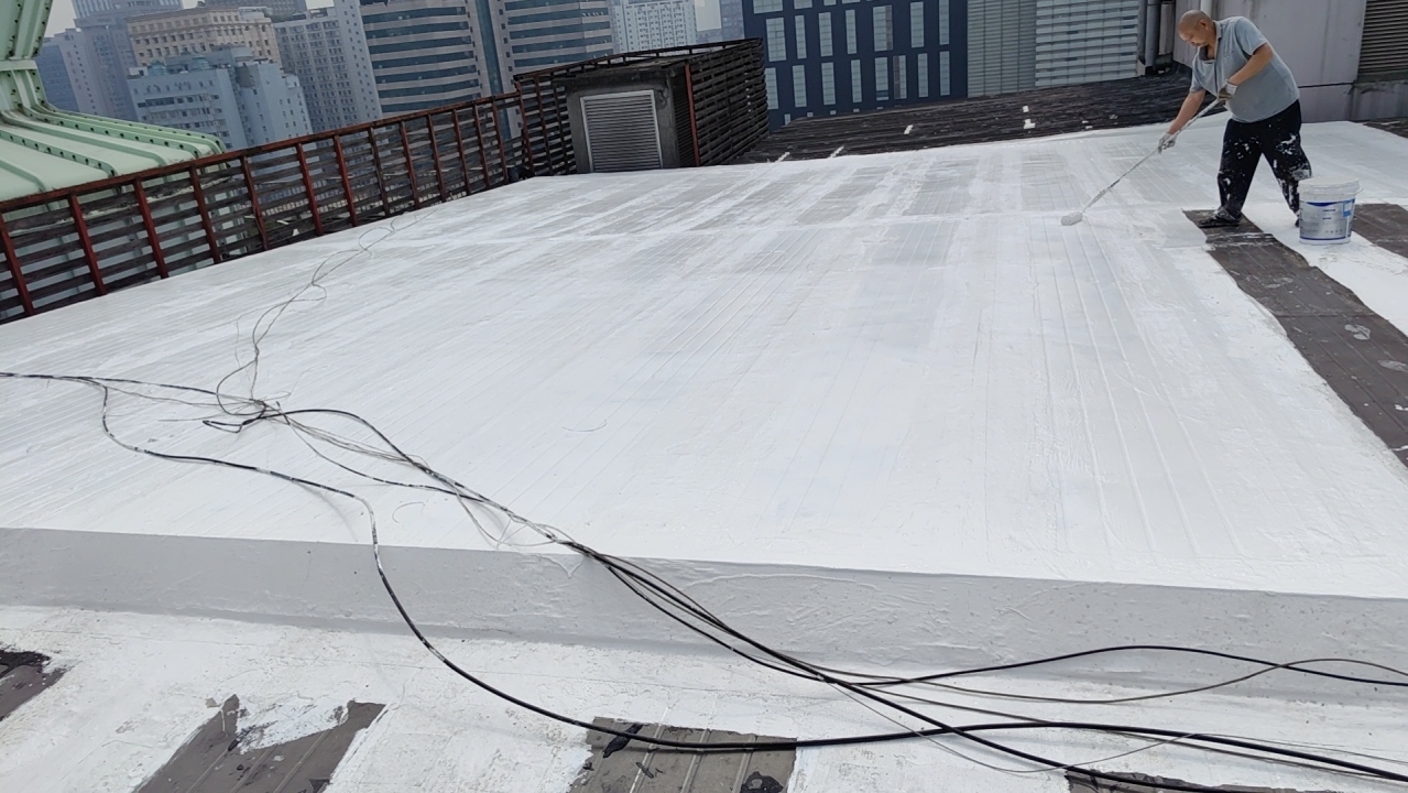 在完成關(guān)鍵部位的防水處理后,公司對(duì)整個(gè)彩鋼頂面進(jìn)行了滿滾涂?jī)杀镾YR金屬屋面專用防水涂料的操作。這一步驟不僅進(jìn)一步加強(qiáng)了彩鋼頂?shù)姆浪阅埽€提升了其防腐能力,有效延長(zhǎng)了彩鋼頂?shù)氖褂脡勖?br/>
