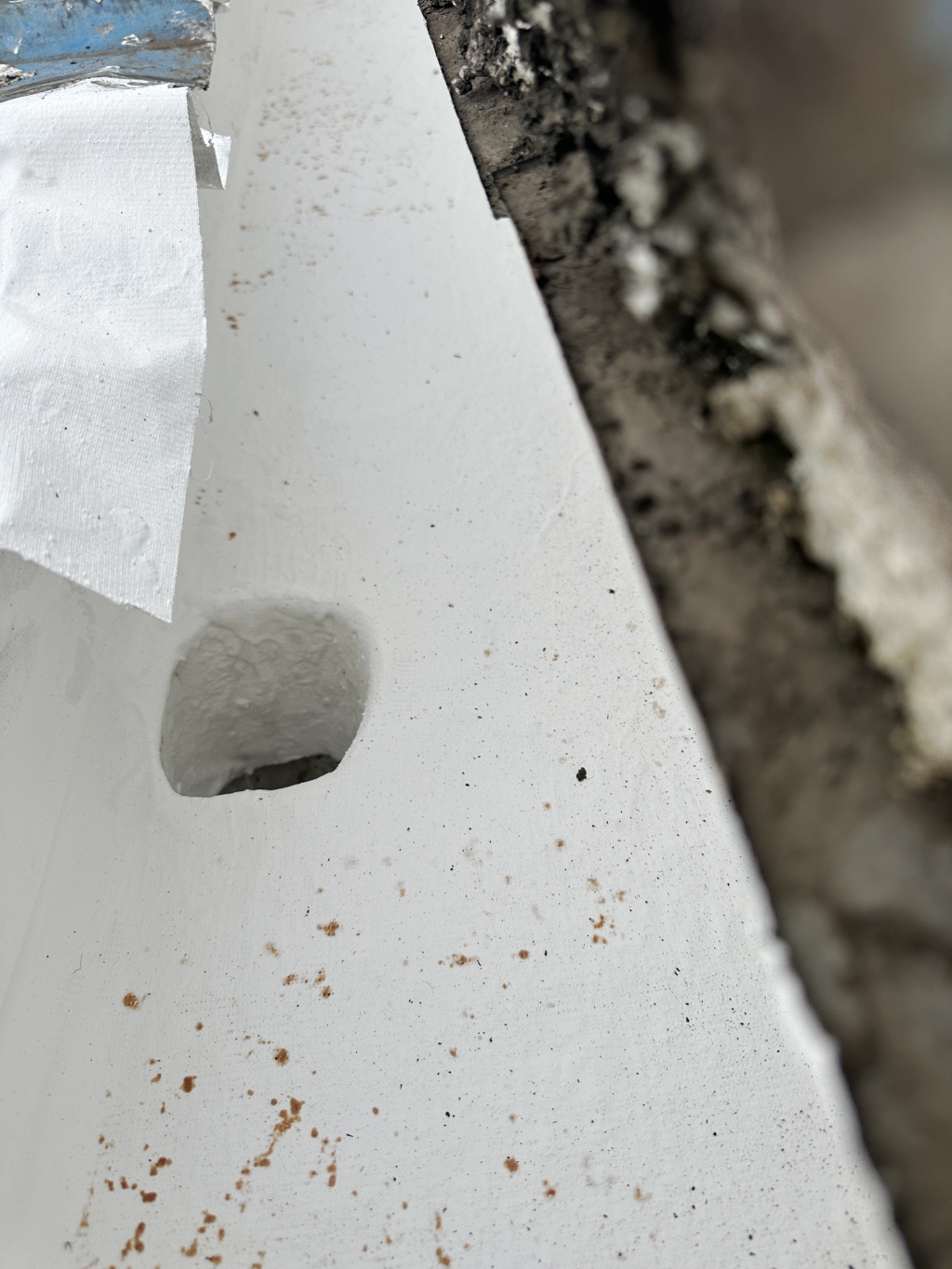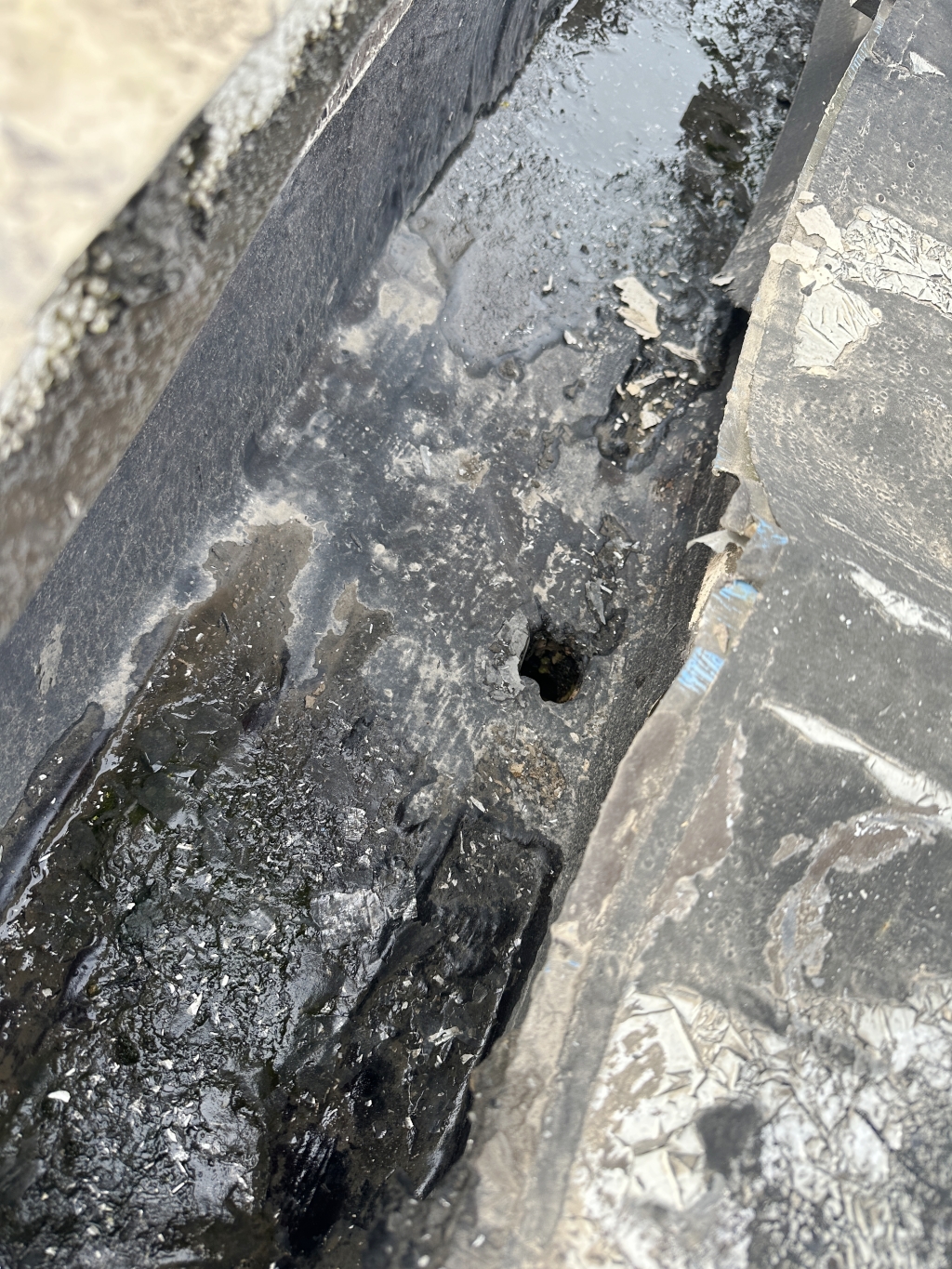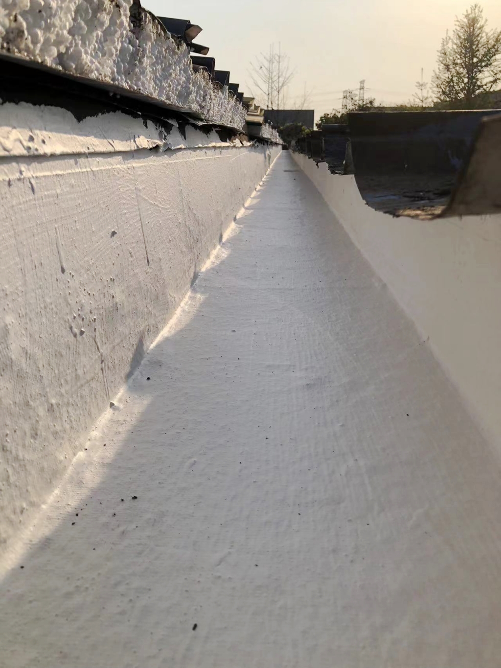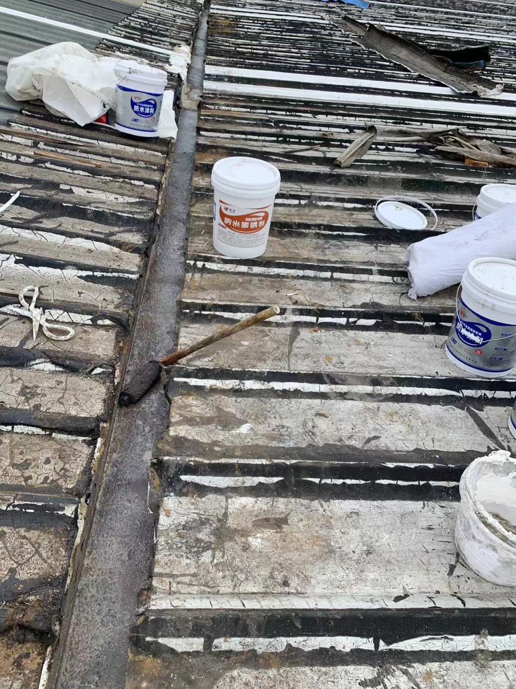 在施工過(guò)程中,公司技術(shù)團(tuán)隊(duì)首先揭掉了天溝內(nèi)的瀝青防水卷材,發(fā)現(xiàn)下方天溝已經(jīng)銹蝕嚴(yán)重,出現(xiàn)了多處穿孔。針對(duì)這一問(wèn)題,團(tuán)隊(duì)先對(duì)天溝進(jìn)行了除銹處理,并涂刷了免除銹納米固銹劑,有效阻止了銹蝕的進(jìn)一步發(fā)展。隨后,團(tuán)隊(duì)在天溝內(nèi)涂刷了SYR金屬屋面專用防水涂料,并鋪貼了專用縫織聚酯布,以增強(qiáng)防水層的韌性和耐久性。最后,再在天溝表面涂刷了兩遍SYR金屬屋面專用防水涂料,確保防水效果達(dá)到**。
