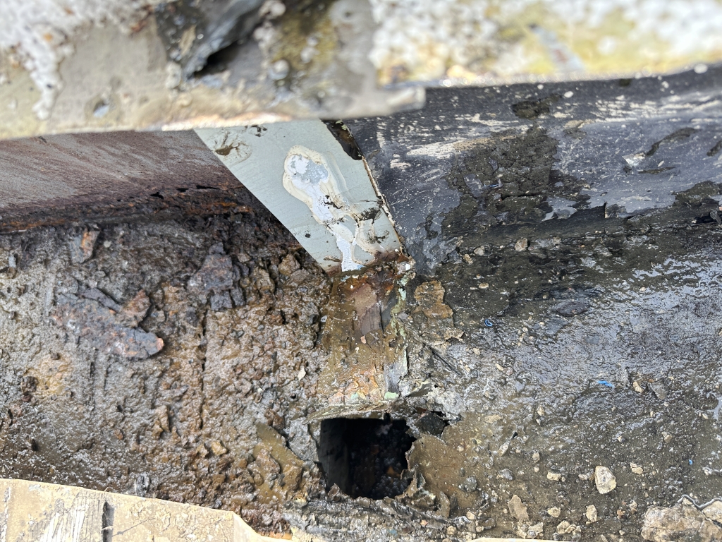 以上圖中可以看到,天溝都已經(jīng)銹蝕穿孔,可以看到外面亮光了