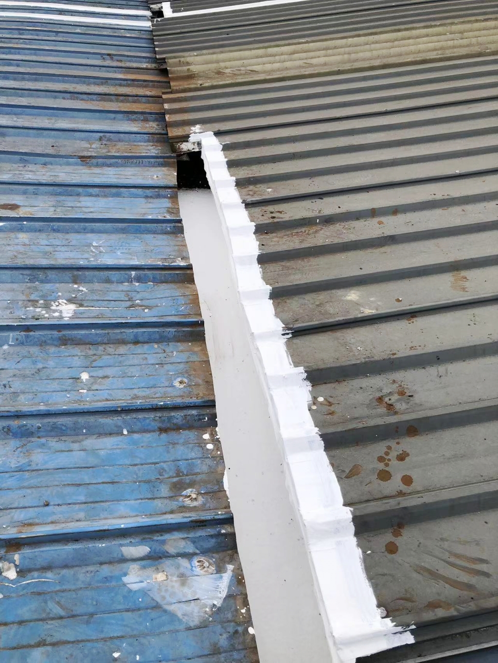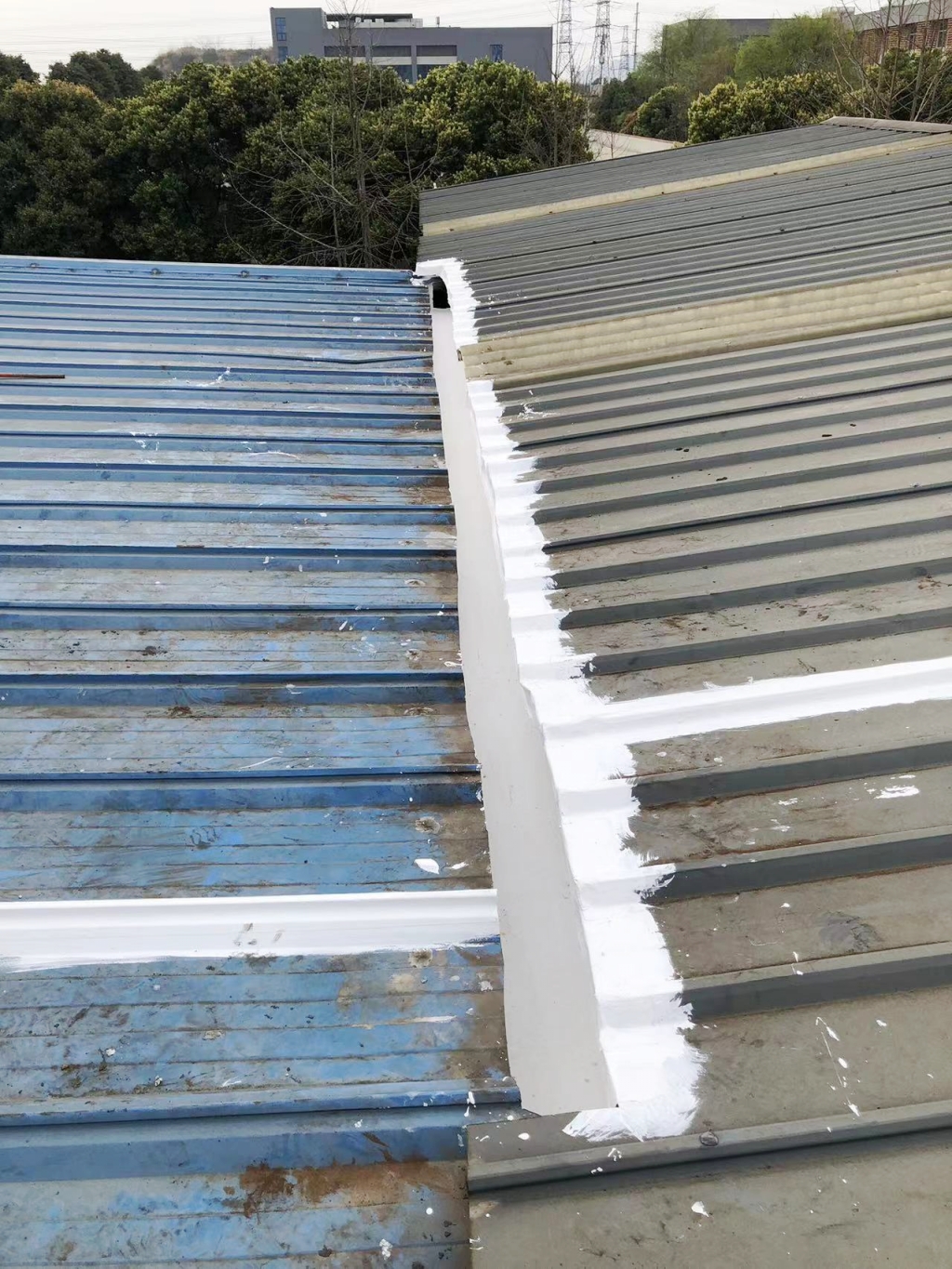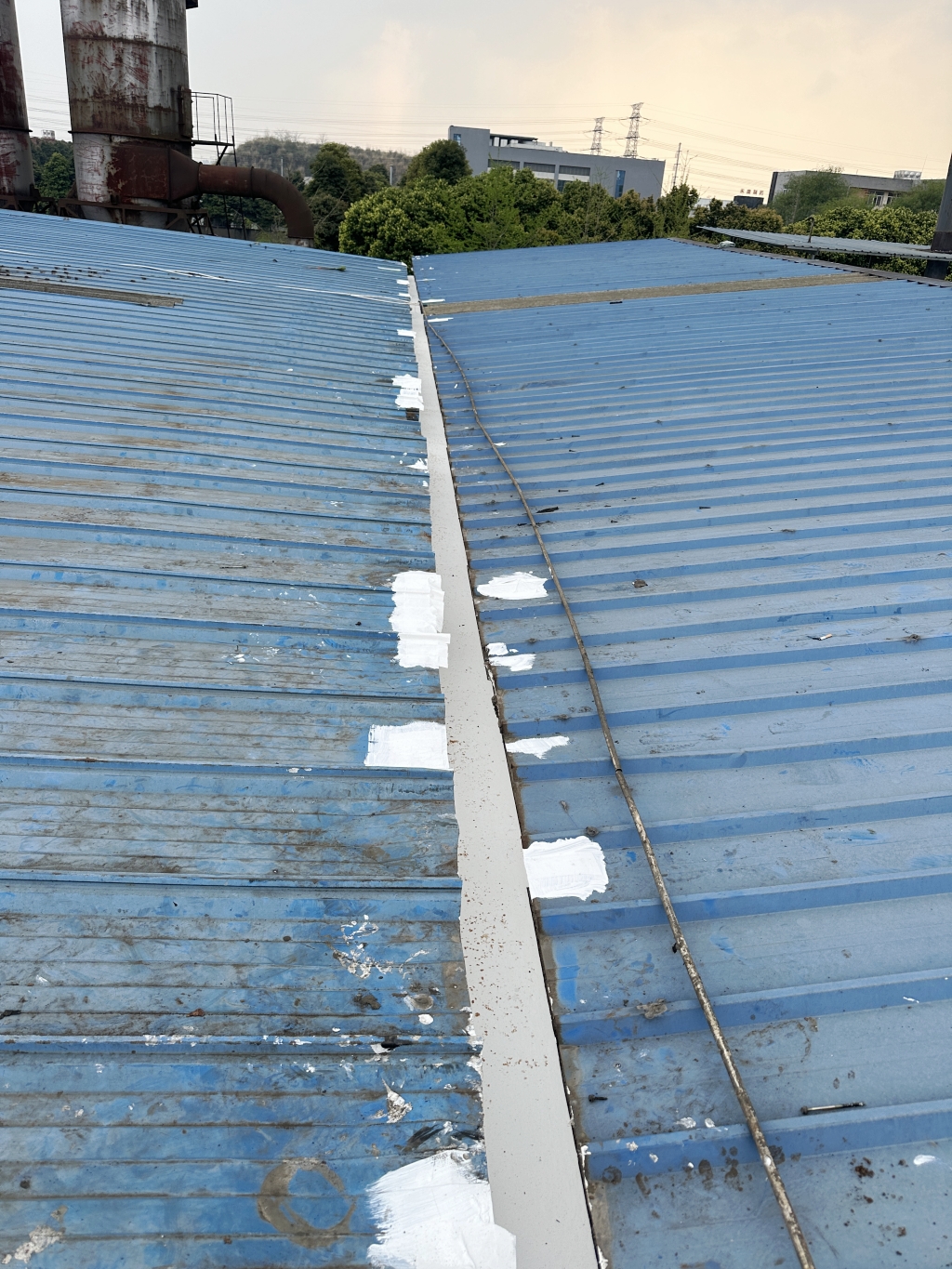 對(duì)于彩鋼頂斜坡表面彩鋼搭接縫的漏水問(wèn)題,公司同樣采用了SYR金屬屋面專用防水涂料配合專用縫織聚酯布進(jìn)行一布三涂的施工處理。這種施工方法不僅能夠有效密封搭接縫隙,防止水分滲透,還能夠提高彩鋼頂?shù)恼w防水性能。