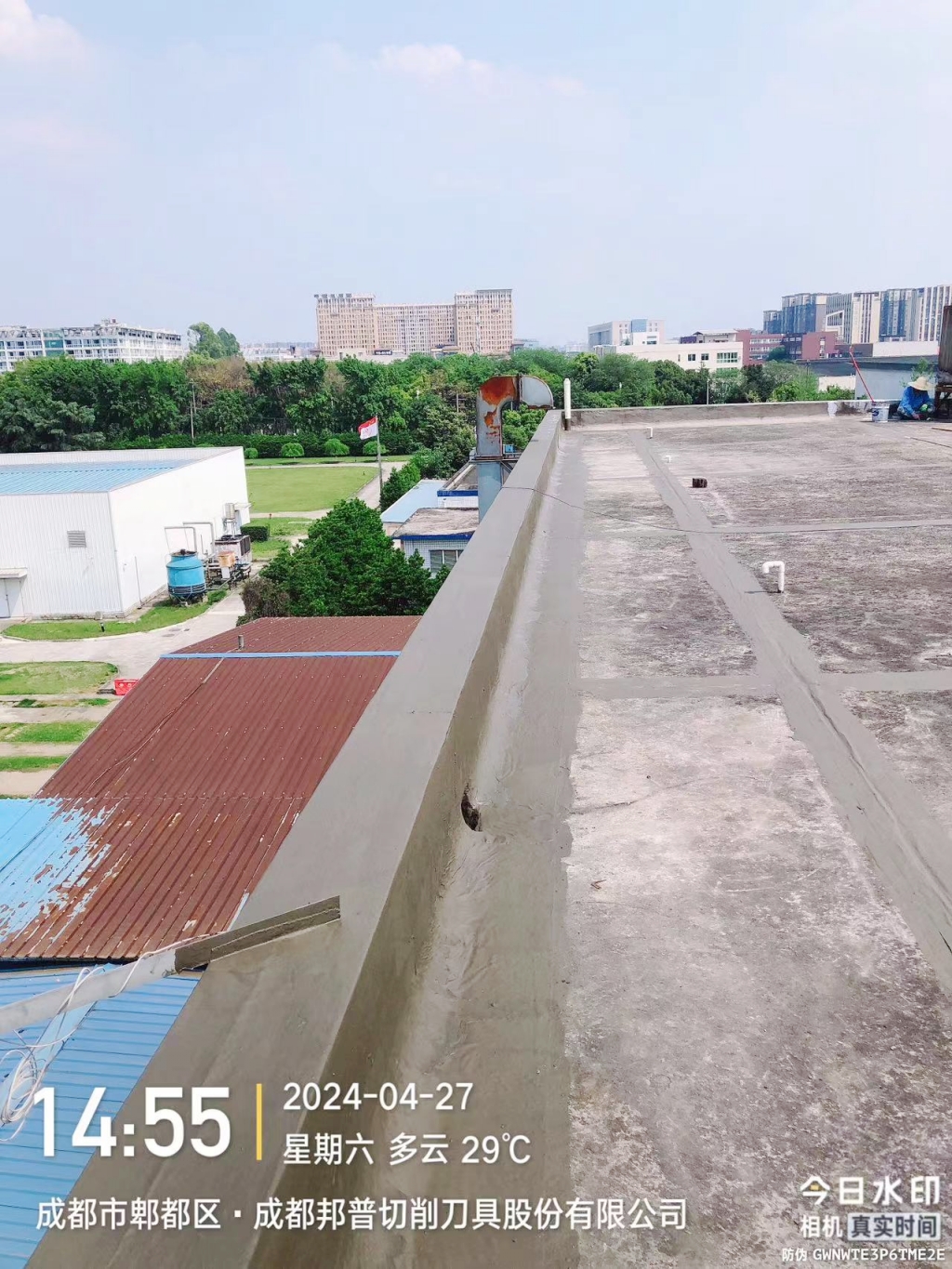 隨著建筑行業的不斷發展,防水工程已成為確保建筑物長期安全、舒適使用的重要一環。近日,成都蜀禹建筑防水工程有限責任公司(以下簡稱“蜀禹防水”)憑借其專業的技術實力和豐富的施工經驗,成功完成了成都邦普切削刀具股份有限公司(以下簡稱“成都邦普”)位于四川省成都市郫都區百草路998號廠區內東北側的一棟混凝土宿舍樓的屋頂防水改造工程,為企業提供了優質的防水解決方案。