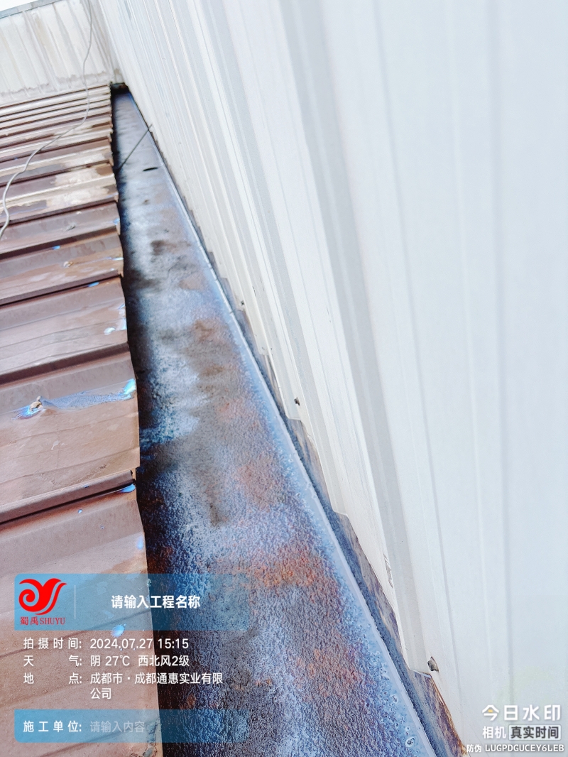 加固與防護:對于天溝旁邊未固定好的墻瓦,采用彩鋼螺絲進行了加固處理,增強了結(jié)構(gòu)的穩(wěn)定性。同時,在天溝內(nèi)底部及兩側(cè)面滿涂刷納米固銹劑,有效防止了銹蝕的進一步擴展。