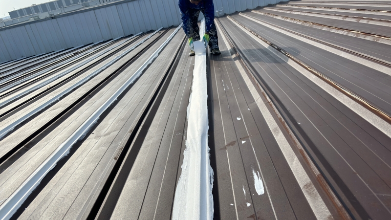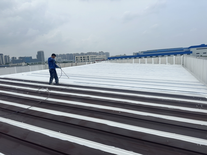 清潔與除銹:施工團隊首先對彩鋼頂表面進行了清掃和浮銹打磨除銹處理,確保基面干凈無雜質(zhì)。
