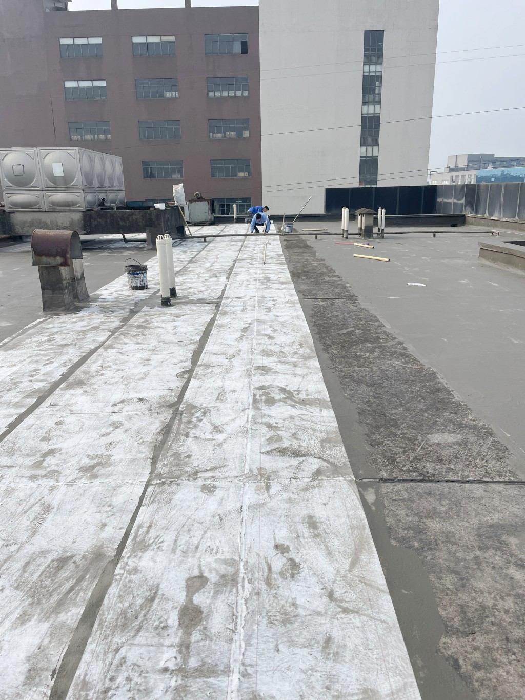 滿做聚合物防水涂料:在修補好的屋頂表面滿做Ⅰ型聚合物防水涂料,該涂料具有良好的粘結性和防水性能,能夠有效滲透到基層孔隙中,形成一道初步的防水屏障。