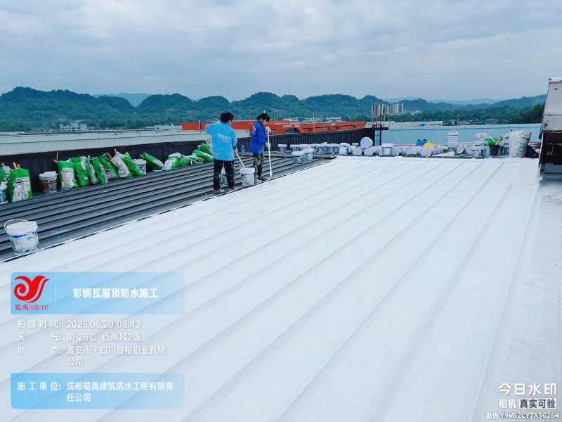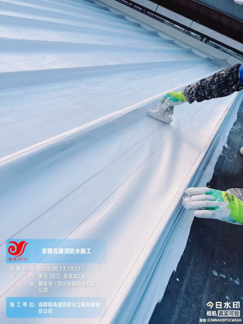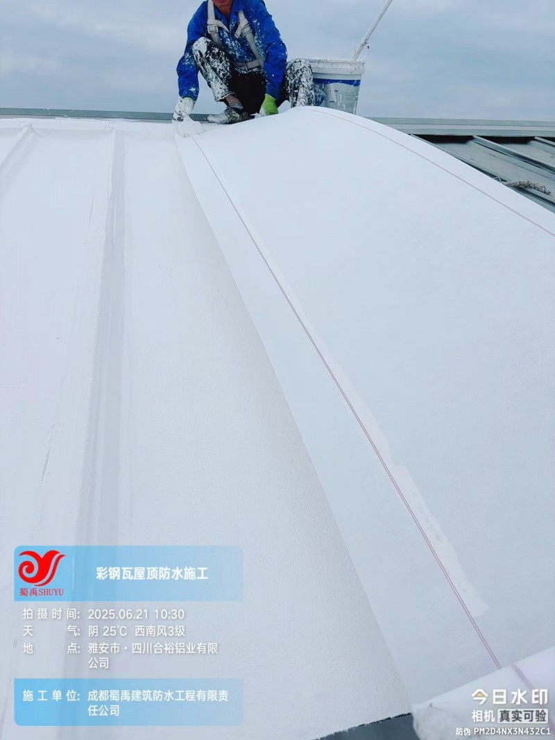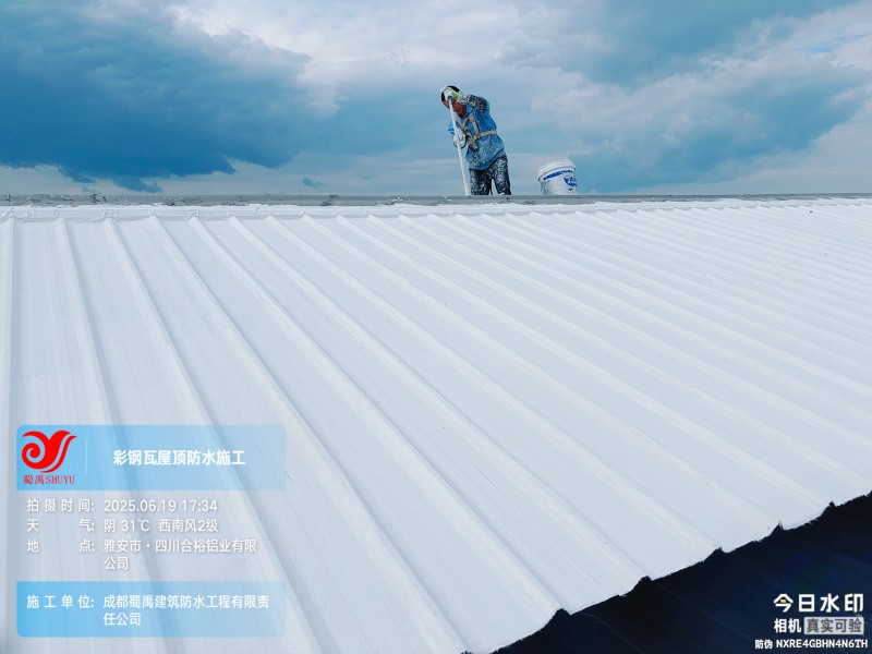 此次四川合裕鋁業(yè) 2 號(hào)鋼結(jié)構(gòu)廠房屋頂防水補(bǔ)漏防腐翻新工程,蜀禹防水團(tuán)隊(duì)嚴(yán)格按照施工方案與技術(shù)標(biāo)準(zhǔn)開展作業(yè),從基面處理到涂層涂刷,每一個(gè)環(huán)節(jié)都做到精細(xì)化把控。通過采用 SYR 金屬屋面無縫防水系統(tǒng),結(jié)合科學(xué)的施工流程,成功解決了廠房屋面的漏水問題,同時(shí)為彩鋼瓦屋面提供了長期的防腐保護(hù)。