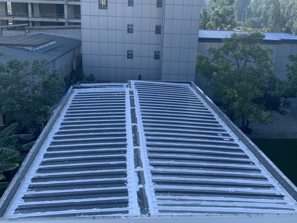 我公司承接的龍泉驛區斯坦丁國際幼稚園彩鋼頂屋面防水施工工程業務,采用的蜀禹牌SYR金屬屋面專用防水涂料配合專用縫織聚酯布一布三涂的方式施工形成的金屬屋面防水系統,產品具有防水、防腐、隔熱、耐老化的功效,并且產品無VOC排放,環保無污染,針對園區的三棟彩鋼頂房頂進行了全面的防水處理,以解決室內漏水難題,給小朋友一個環保無污染、不漏水的干凈整潔的教室。